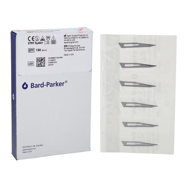 The Bard-Parker® Surgical Blade is a high-quality, disposable scalpel blade designed for precision cutting in various surgical procedures. It is made from stainless steel, ensuring durability and sharpness. The blade is sterile and intended for single-use applications, reducing the risk of cross-contamination. It is not made with natural rubber latex, making it suitable for patients with latex allergies.