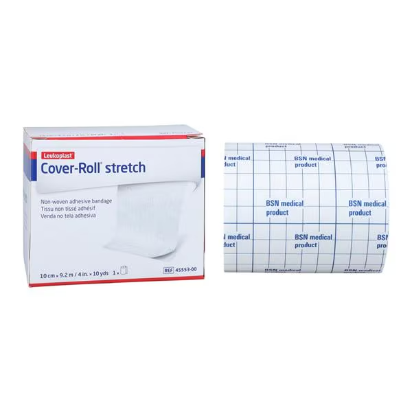 Cover-Roll Stretch is a soft, stretchable, non-woven polyester adhesive bandage designed for dressing retention and light compression. It adheres securely even in the presence of moisture, is latex-free, breathable (permits air and water vapor), and adapts well to body contours. This makes it ideal for securing dressings over joints or other areas that move.